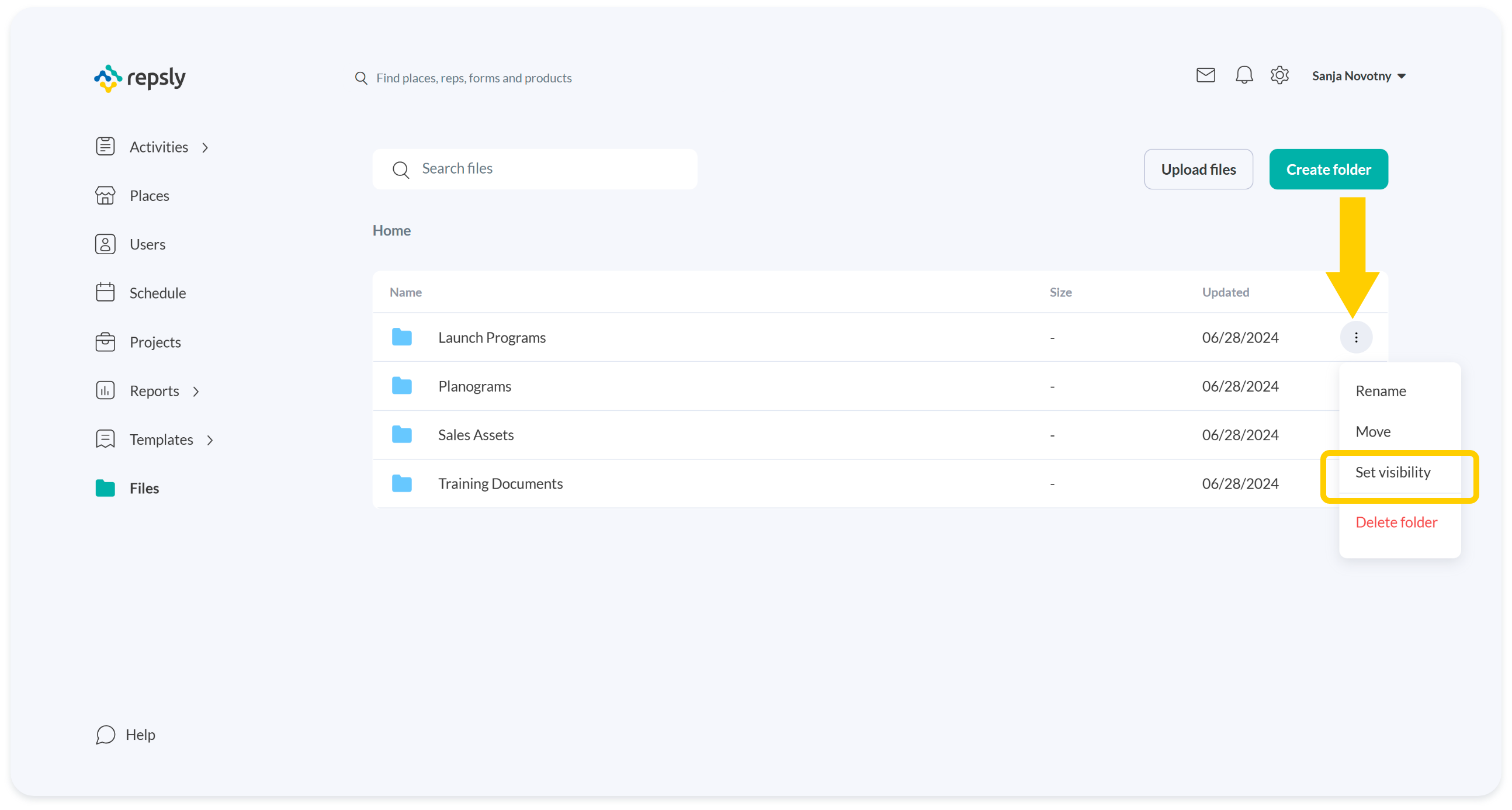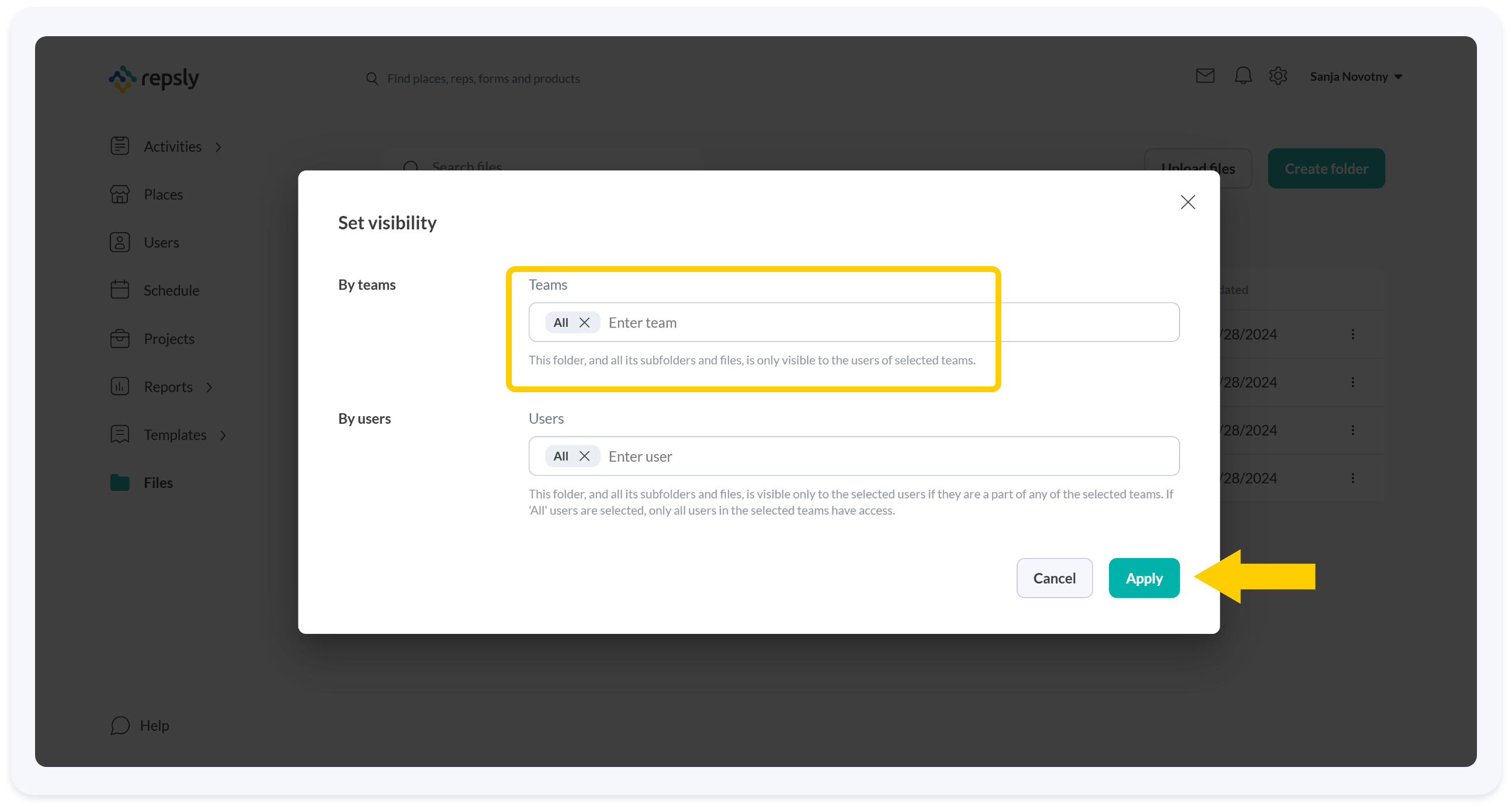 Control which teams can see and use your files and folders with team-based visibility settings.